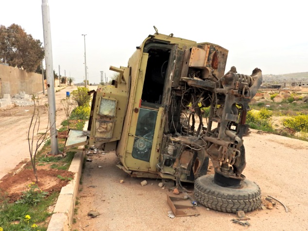 I spent nearly one more week in Kobane. I needed to leave Rojava as soon as possible, but the border with Iraqi Kurdistan was closed due to Newroz for some days. Therefore, I decided to stay in Rojava for some extra days. Until the departure, I have become familiar with the street to street and person to person as I always walked around the city. There was an overturned jeep right next to the YPG office near my hostel; according to soldiers, it was hit by a mine set by ISIS during the Battle in Kobane in 2014. In remembrance of war, the destroyed jeep was still displayed as it was.